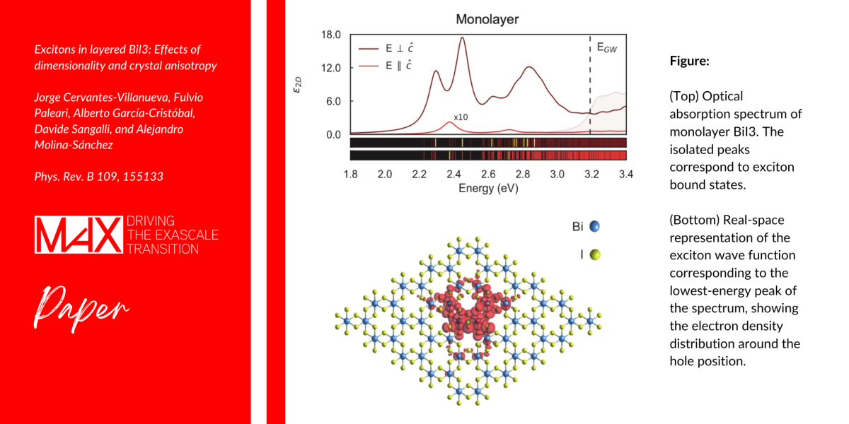 <<We used the Quantum ESPRESSO code to compute the ground-state properties of the system within density functional theory, and the YAMBO code to compute quasiparticle corrections and to solve the Bethe-Salpeter equation for excitons within many-body perturbation theory. In particular, we calculated exciton dispersion relations including the nonanalytic contribution induced by the long-range Coulomb interaction.>> says Fulvio Paleari (CNR-Nano, Italy), one of the authors of the scientific paper.