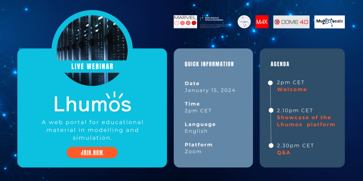 Supported by MaX, CECAM, MARVEL, MultiXscale, and DOME4.0, Lhumos (Learning HUb for MOdeling and Simulation) is a novel educational platform developed to facilitate the upskilling of students, scientists, and industrial users in HPC applications in the material sciences domain